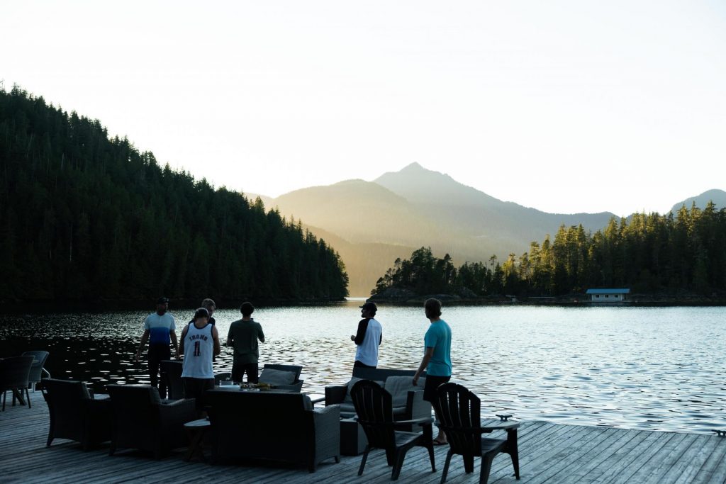 The main lodge features a beautiful dining room with large live edge fir tables created right in our backyard and a sprawling lounge with comfortable couches and games for you to enjoy. After a full day of surfing, fishing and adventure, our large front deck is the perfect spot for you to relax, unwind and enjoy the sunset with friends.